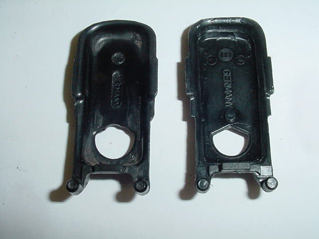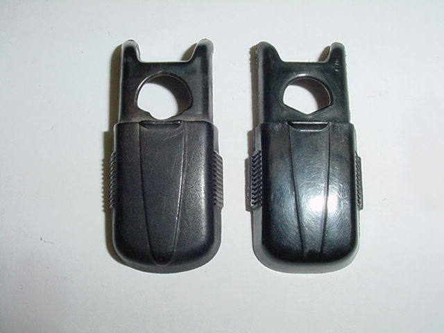 The old black plastic covers are shown on the left and the new ones on the