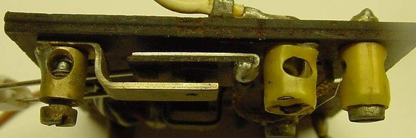 between the yellow terminals are the two horizontal brass plates. They are